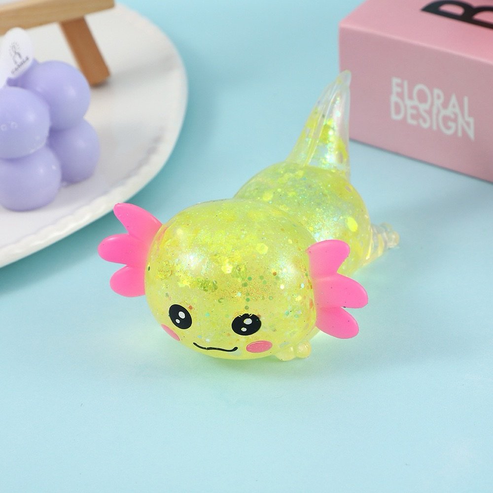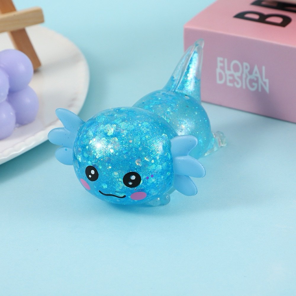 Tiny glittery gilled friends with a jelly-like, bouncy give — think Taba squishy vibes and an oddly satisfying squelch every time you press. Soft, tactile, and full of sparkly charm, they’re perfect for a quick squeeze to calm a busy moment at your desk or on the go. 🐟✨